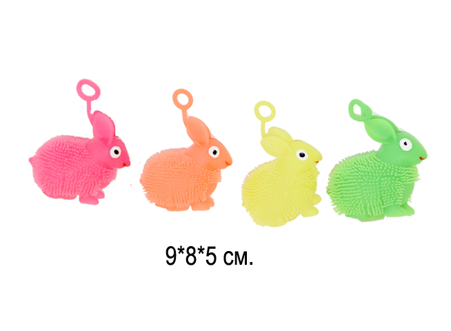 Мяч Антистресс арт. 9014 Зайка цвета микс на резинке (24 шт.) шоубокс•