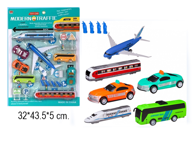 В состав набора «Аэропорт» входят такие необходимые для обеспечения комфортного перемещения граждан к аэропорту и обратно машины, поезда, и, конечно, самолет, который готов быстро переместить туриста в нужную точку мира.
